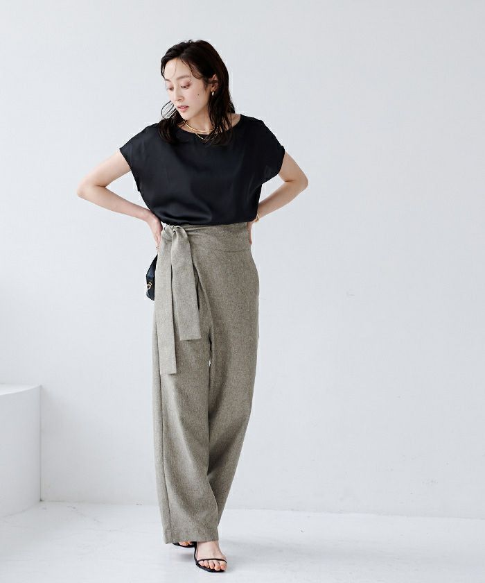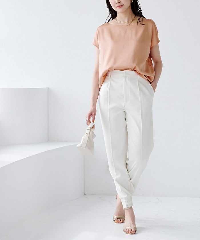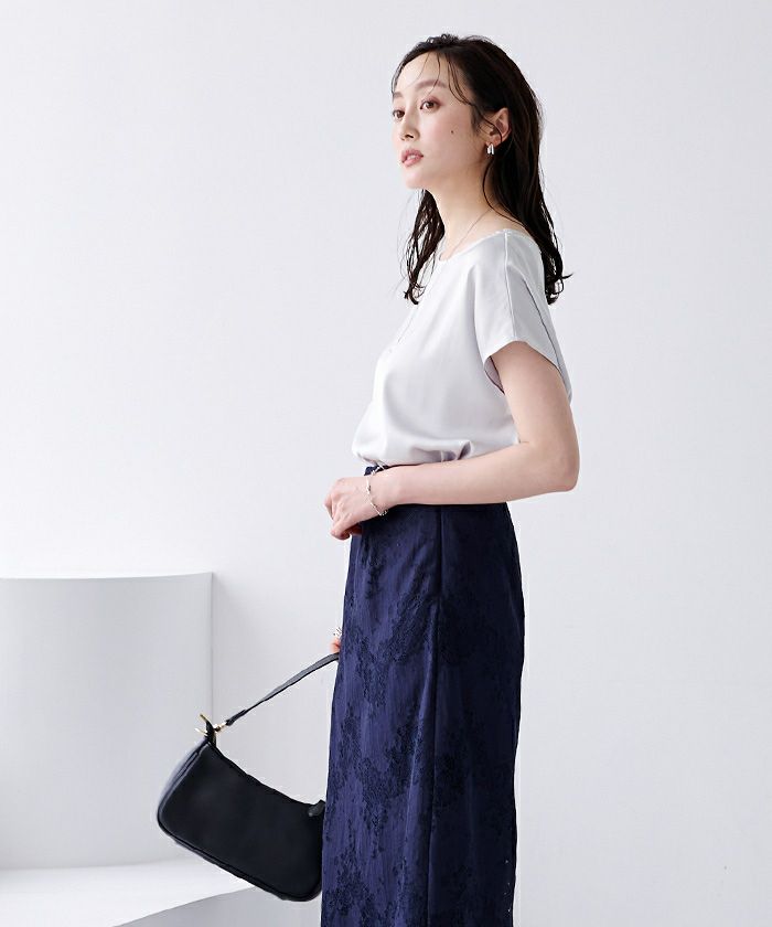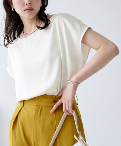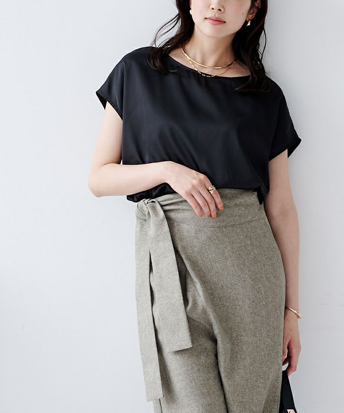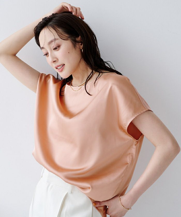 人気の形が今年らしくサテンでリニューアルされたブラウスです。