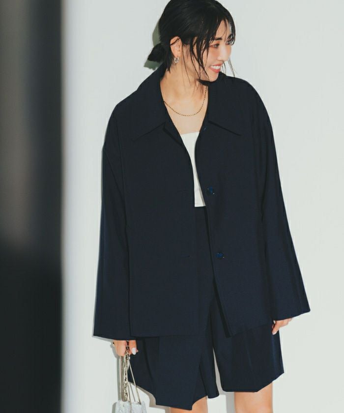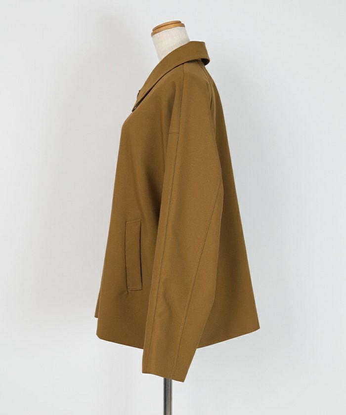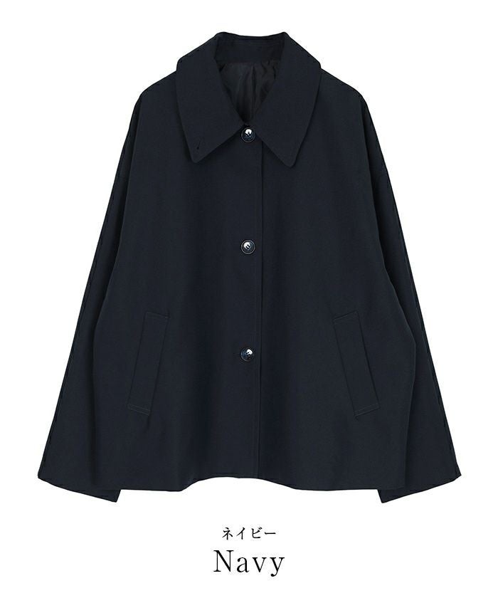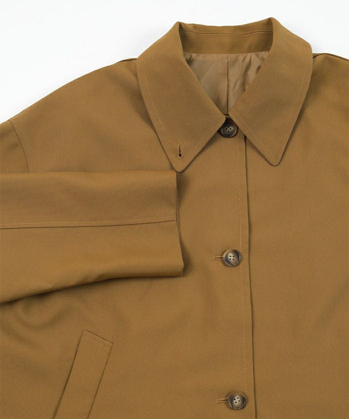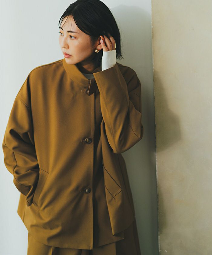 ステンカラーが今季らしく、襟の裏側には釦がついておりスタンドカラーのように着て頂くのも可能です。