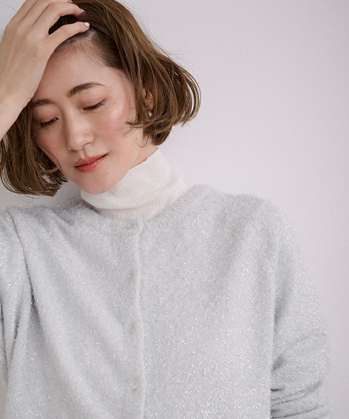 クルーネックラメカーディガン