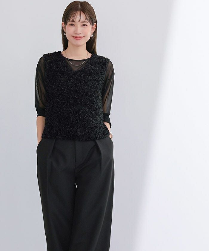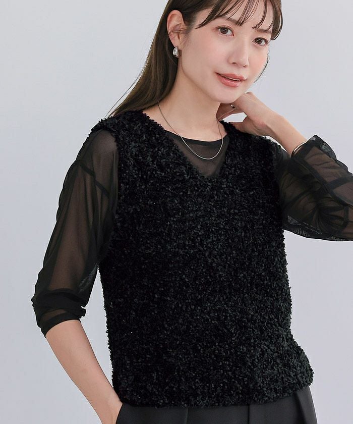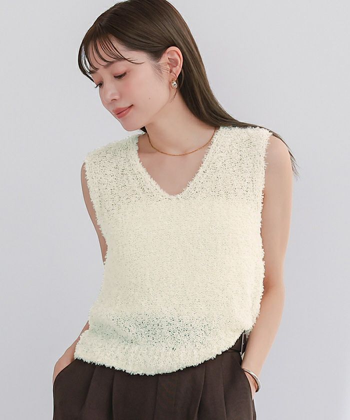 立体感のあるファンシーヤーンが可愛いベスト。