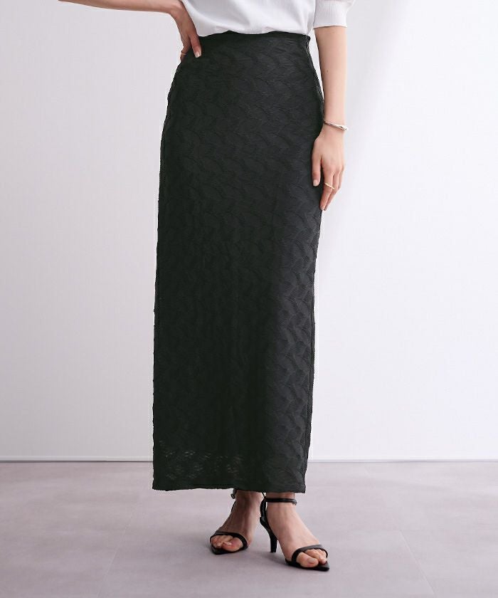 ミニマムなデザインが映える、存在感のあるジャガードデザインのスカート。