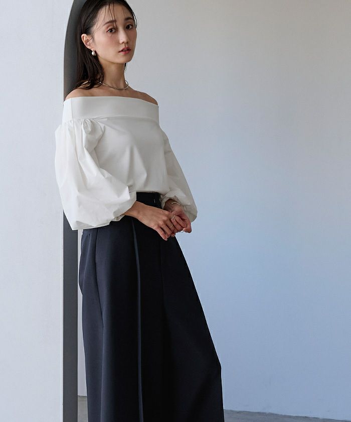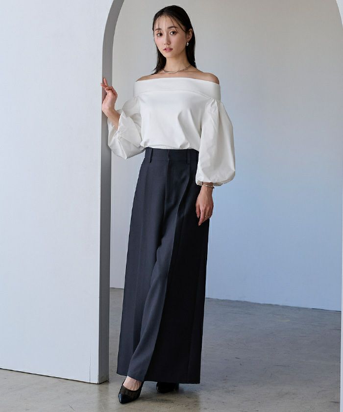 ウエスト部分にタックを施しており、裾にかけて広がるシルエットに仕上げました。