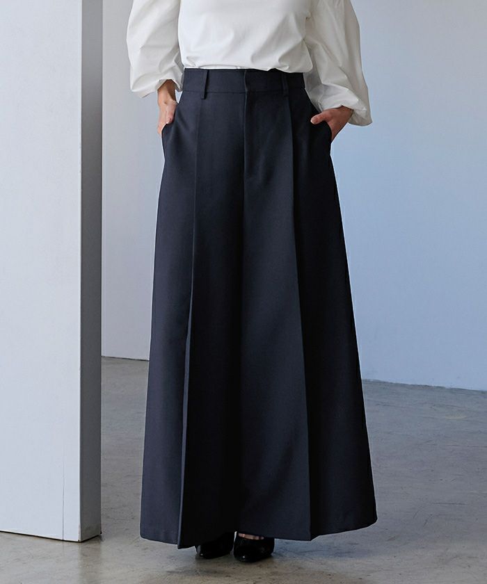 しっかり長めの丈感で着用できるワイドパンツ。