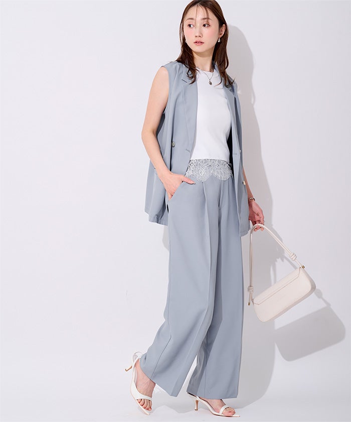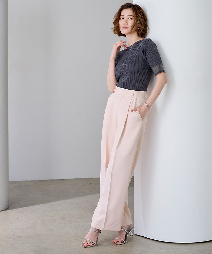 センタープレスタックワイドパンツ