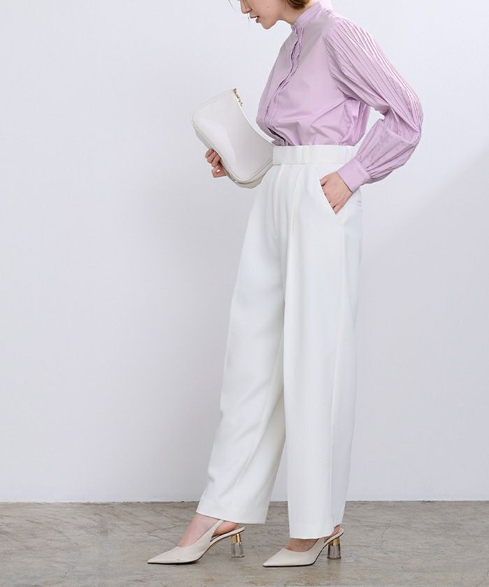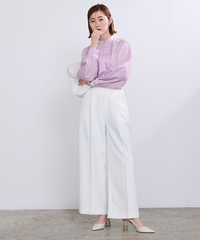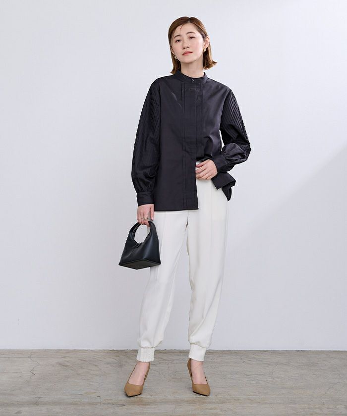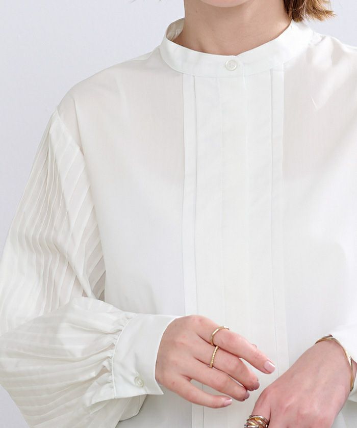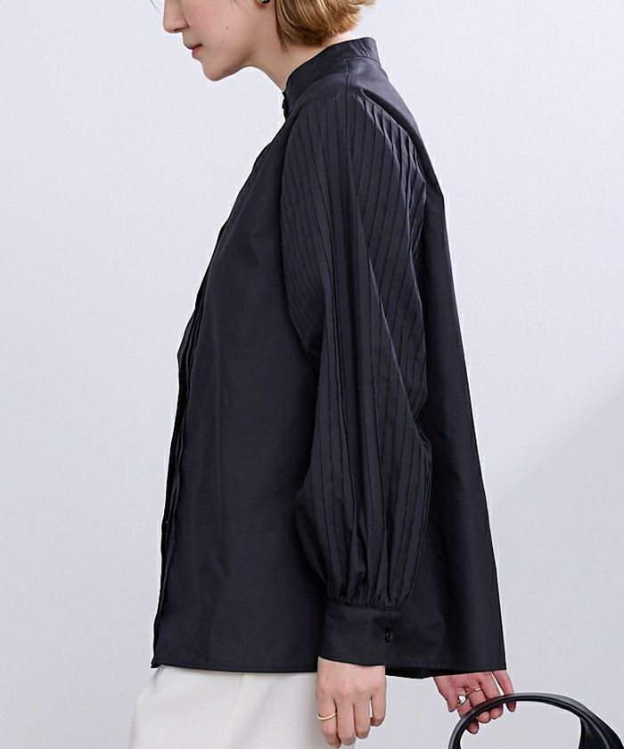 身頃には太めのプリーツ、袖には細めのプリーツを施しました。