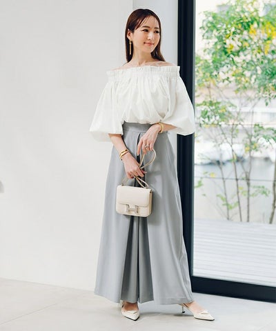ワイドパンツですが見た感じはスカートです!とても可愛いのですが、シワになりやすいのでそこが残念。