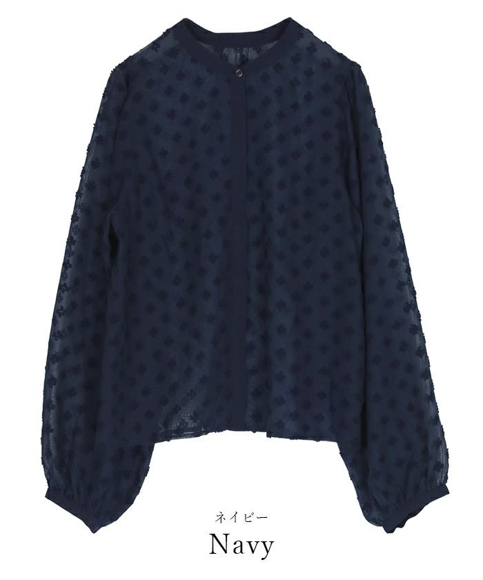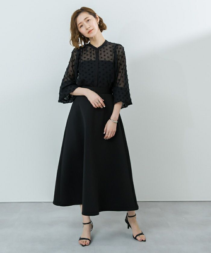 身頃と袖は透け感のあるドビードットで1枚で華やか見えします。