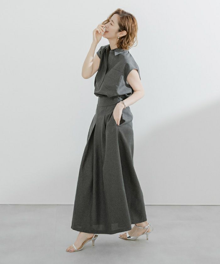 同素材のトップス、ジャケットとセットで着用可能です。