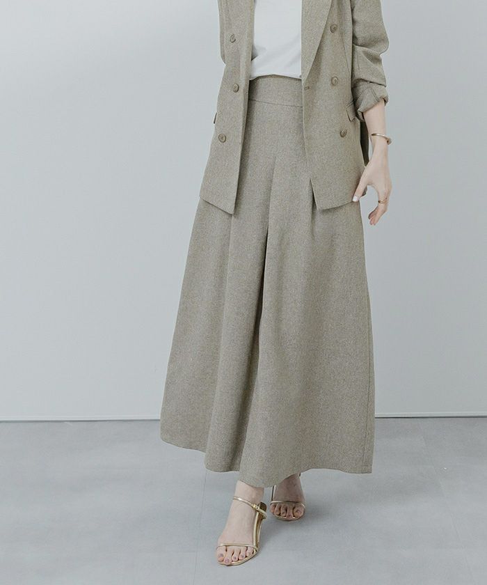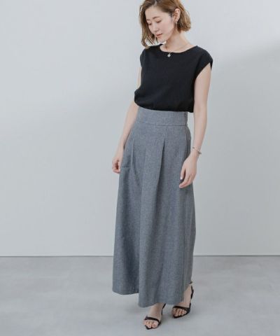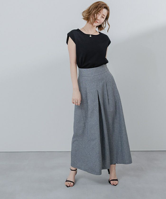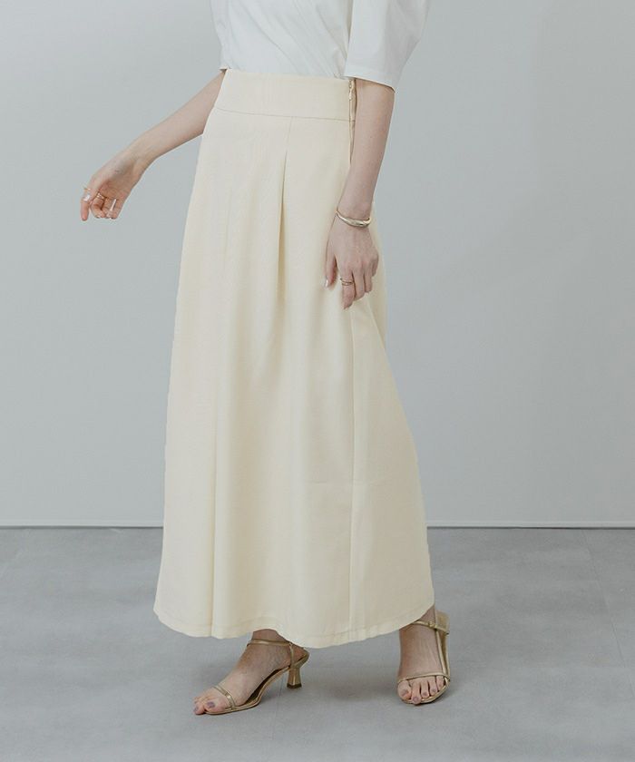 リネンライクフロントタックハイウエストスカート