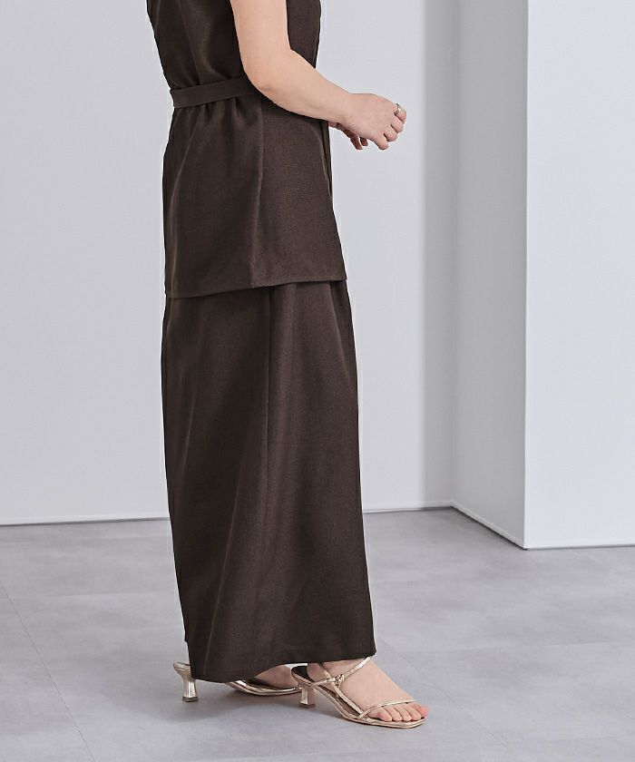 リネンライクサイドベルトデザインタイトスカート