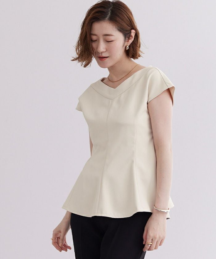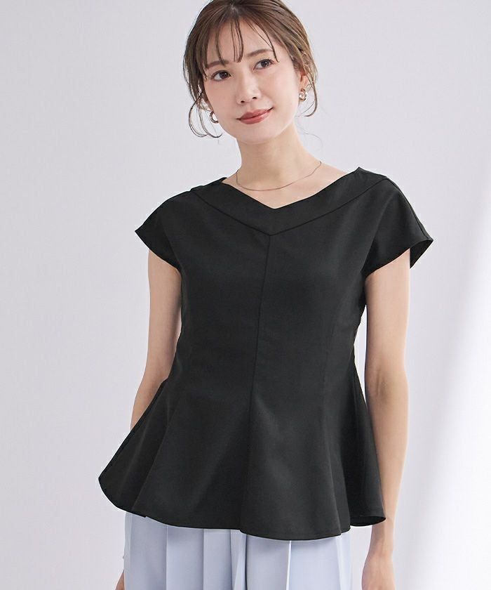 ワイドVネックペプラムトップス【メール便可/100】