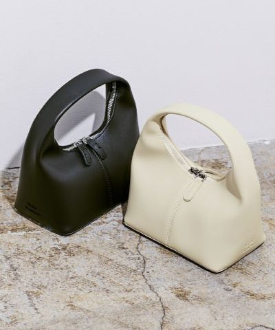間口からストラップにかけて一周するように付けたゴールドのファスナーは間口を大きく広げて使えます。