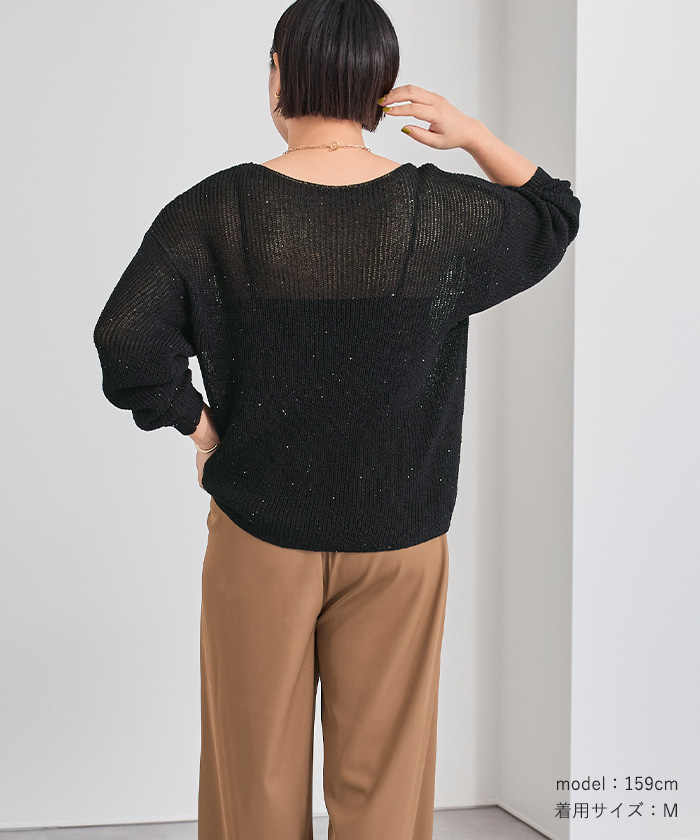 スパンコールオーバーサイズシアーニット