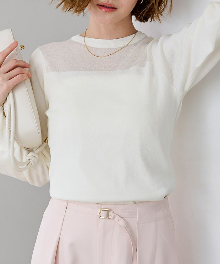 肩の部分がシアーのニットプルオーバー