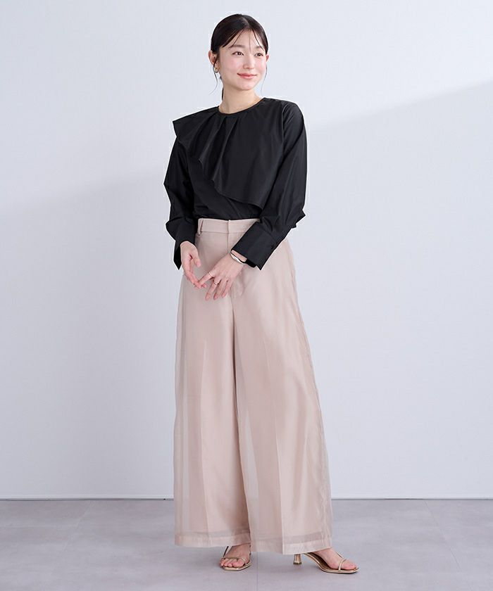 ネックラインにタックを施してふんわりしたラッフルデザインに仕上げました。
