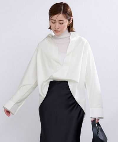 スキッパーネックドルマンスリーブオーバーサイズシャツ