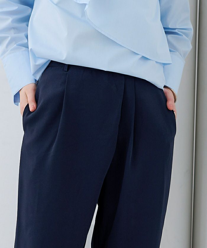 オフィススタイルを華やかなスタイルにしてくれるラップパンツです。