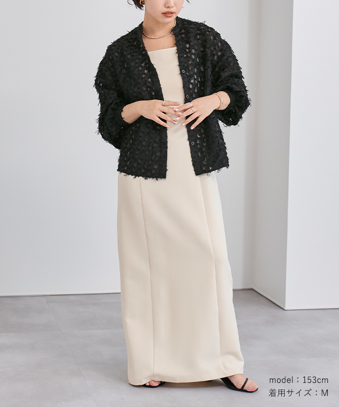 デザインがオシャレでブラックのワンピースやボトムスと合わせるといい感じです!ただ家で洗濯ができない?表示になっていたので星は一つ減らして4にしました!