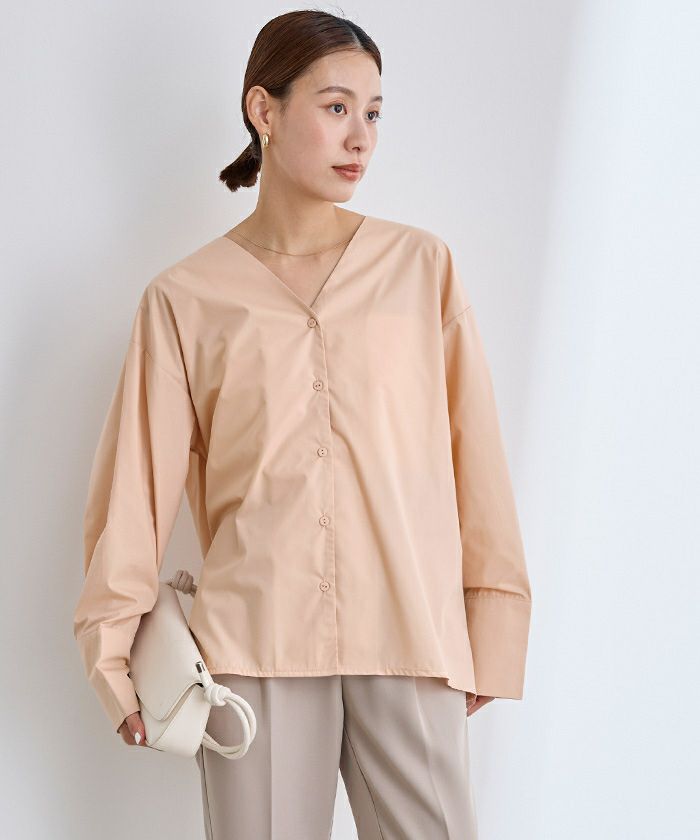 ベーシックでカジュアルなVネックシャツブラウス