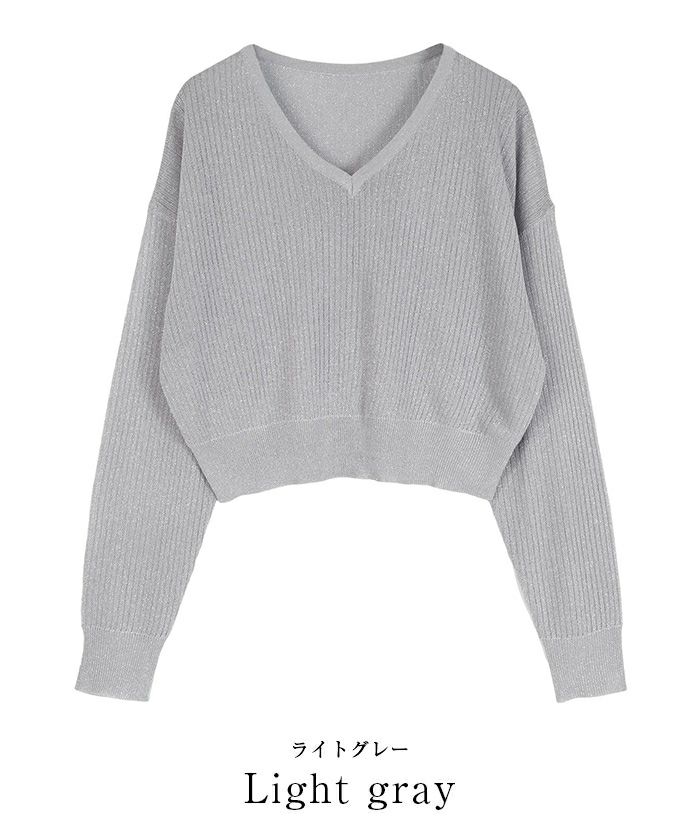 ウエスト位置が上がって見えるクロップド丈のニット。