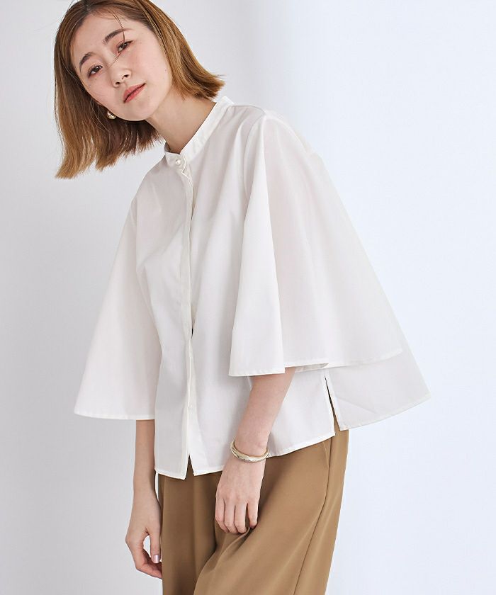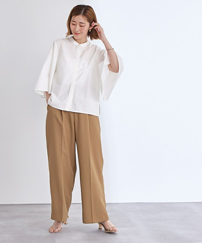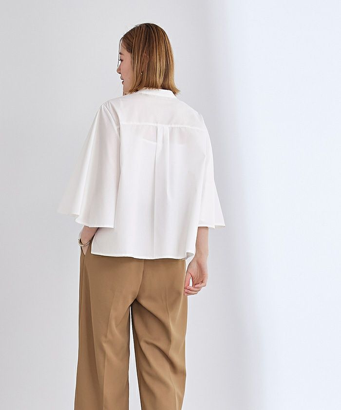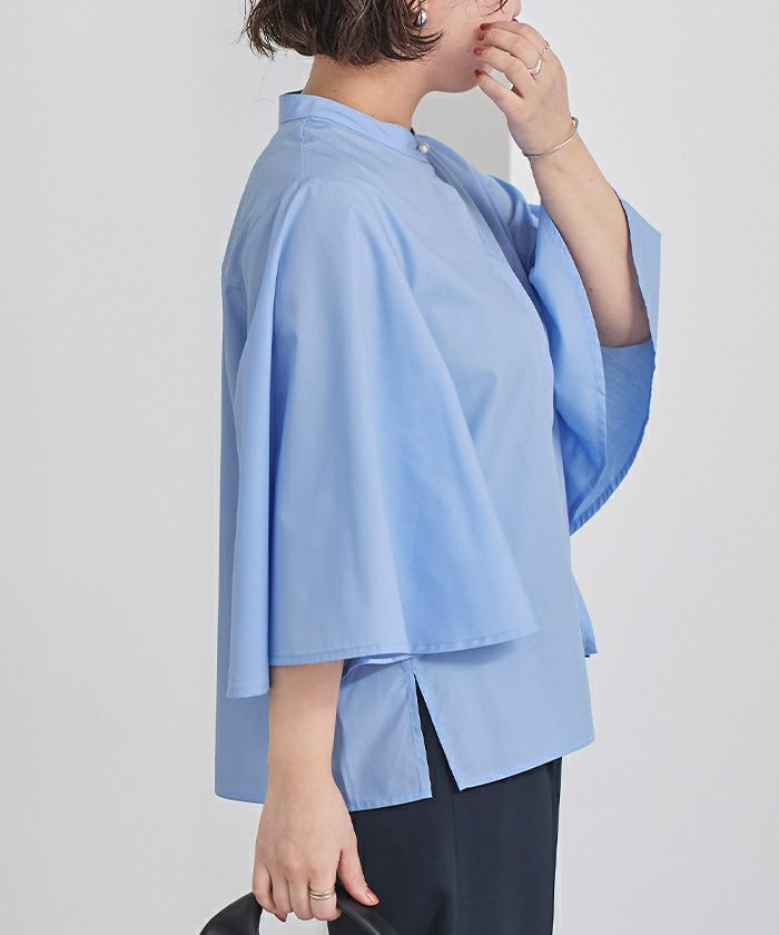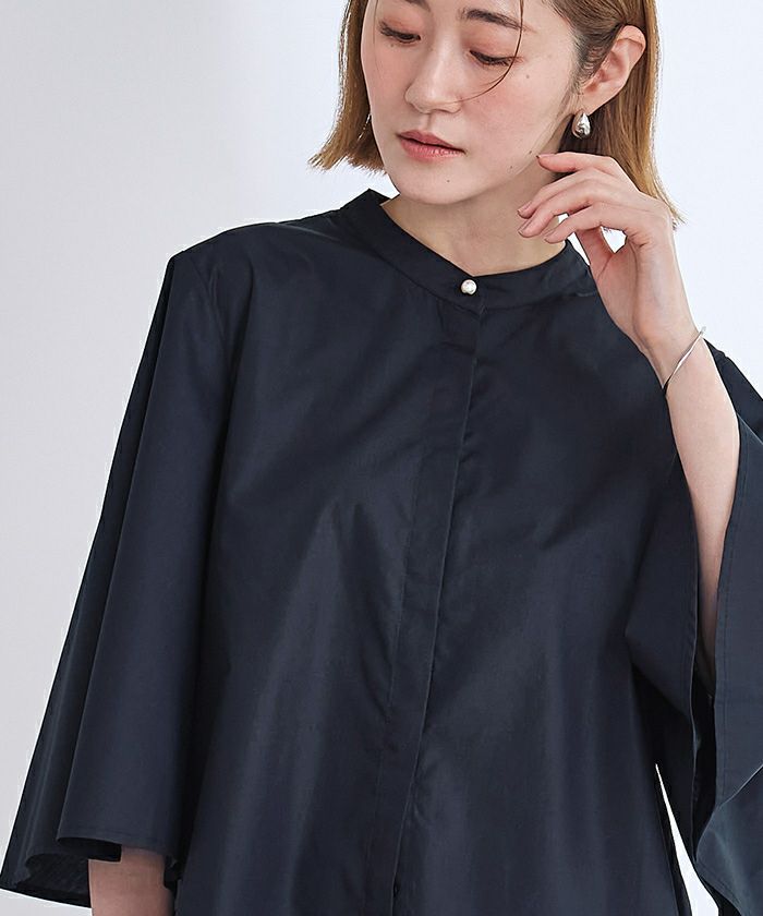 パール釦バンドカラーフレアスリーブブラウス【メール便可/90】