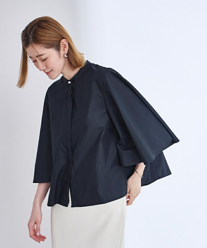 ドレープの効いたフレアスリーブが女性らしさを演出してくれます。