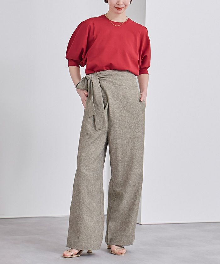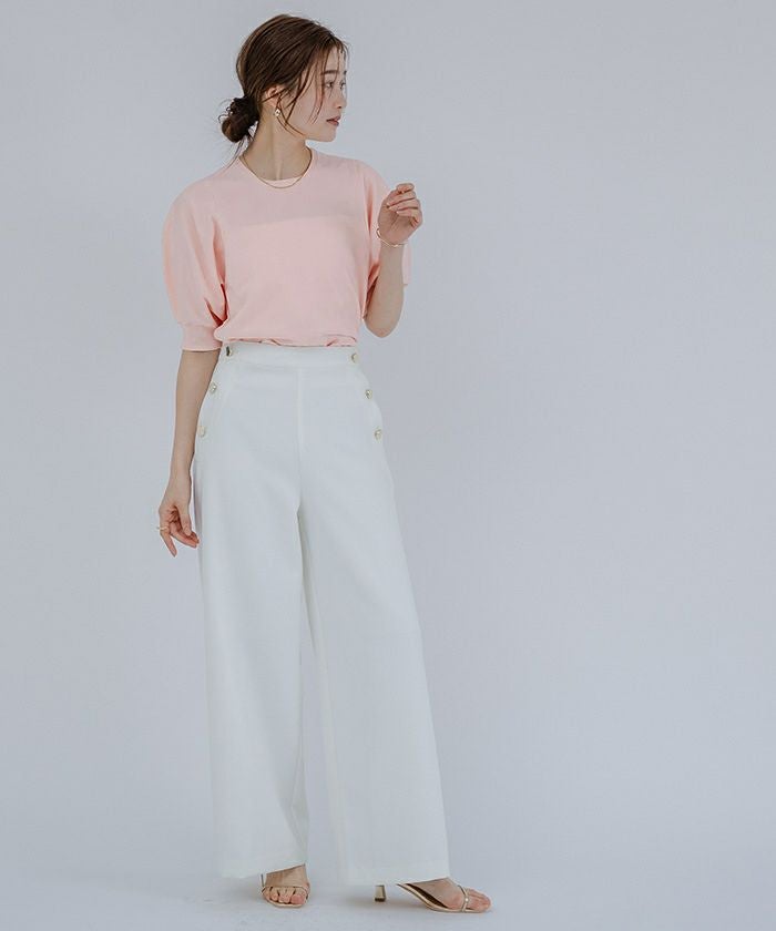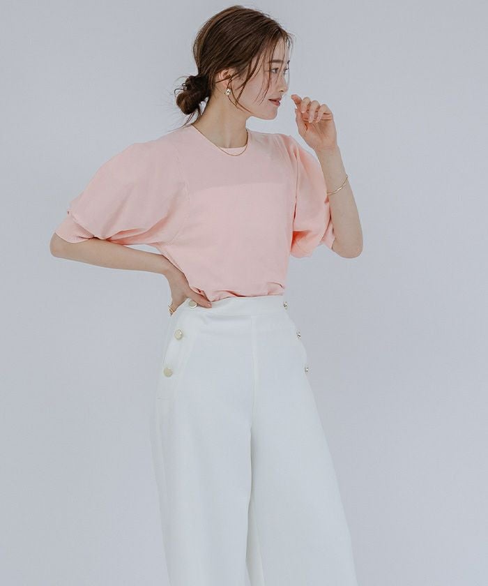 パフスリーブがとてもかわいいです。 ウエスもゴムがはいっているので、ワイドパンツにも合わせやすかったです。