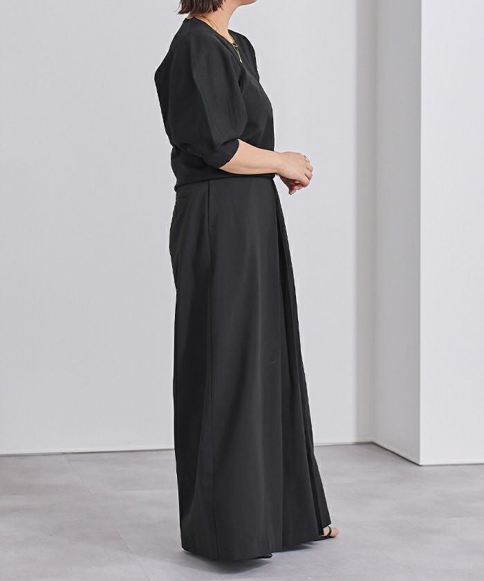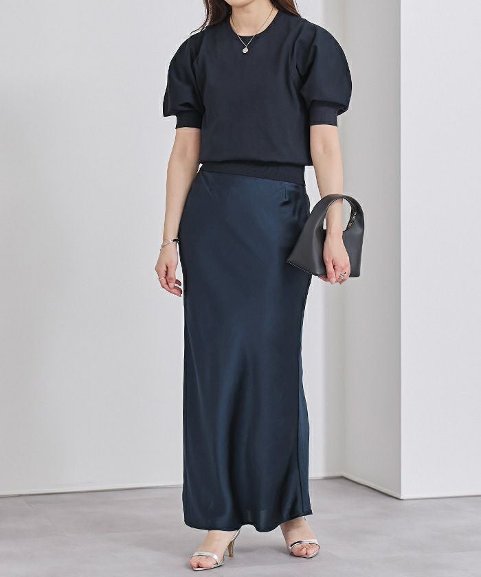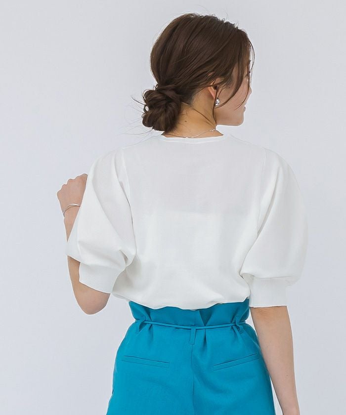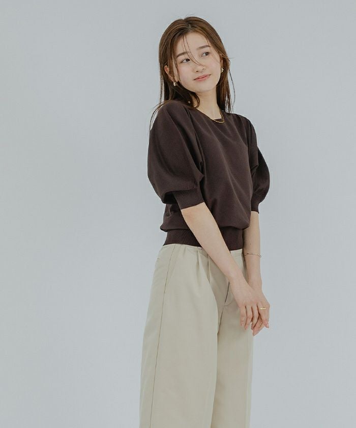 丸いシルエットの袖で重心が高く見えてスタイルアップが叶いつつ、