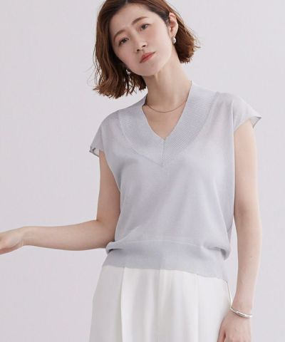 Vネックで顔回りがすっきり。