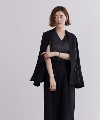 シアーのラメニットが装いにアクセントをもたらしてくれます。