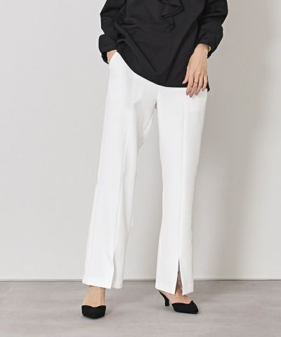 フロント裾に施したスリットがポイントのスリムパンツ。