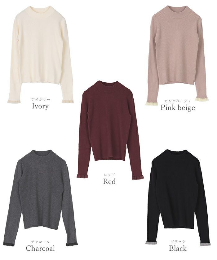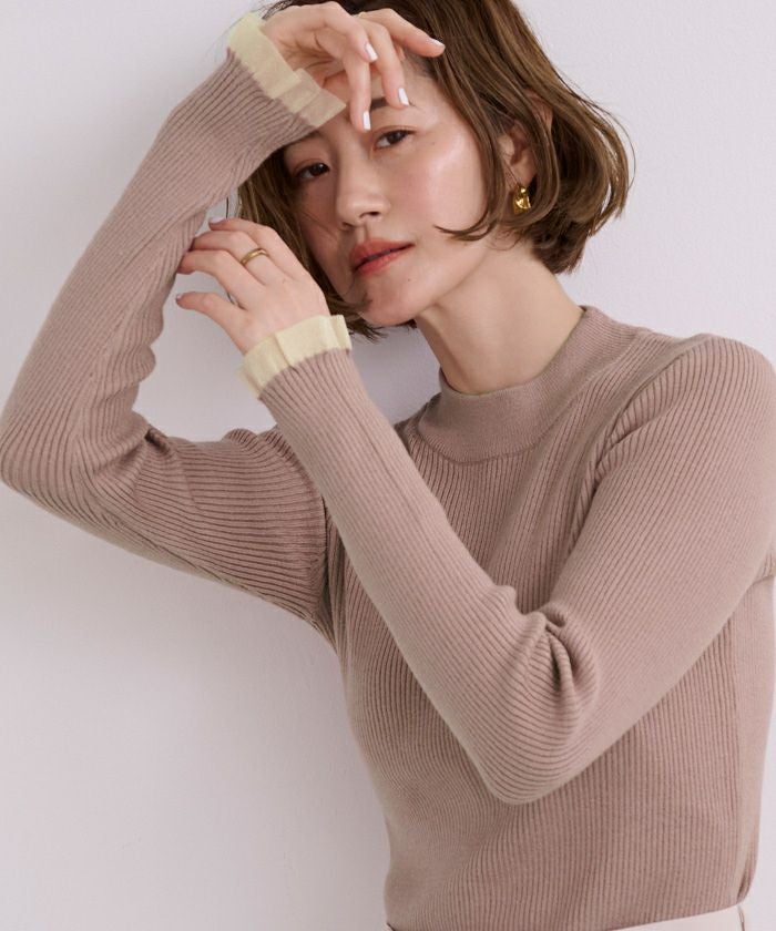シアースリーブプチハイネックリブニット
