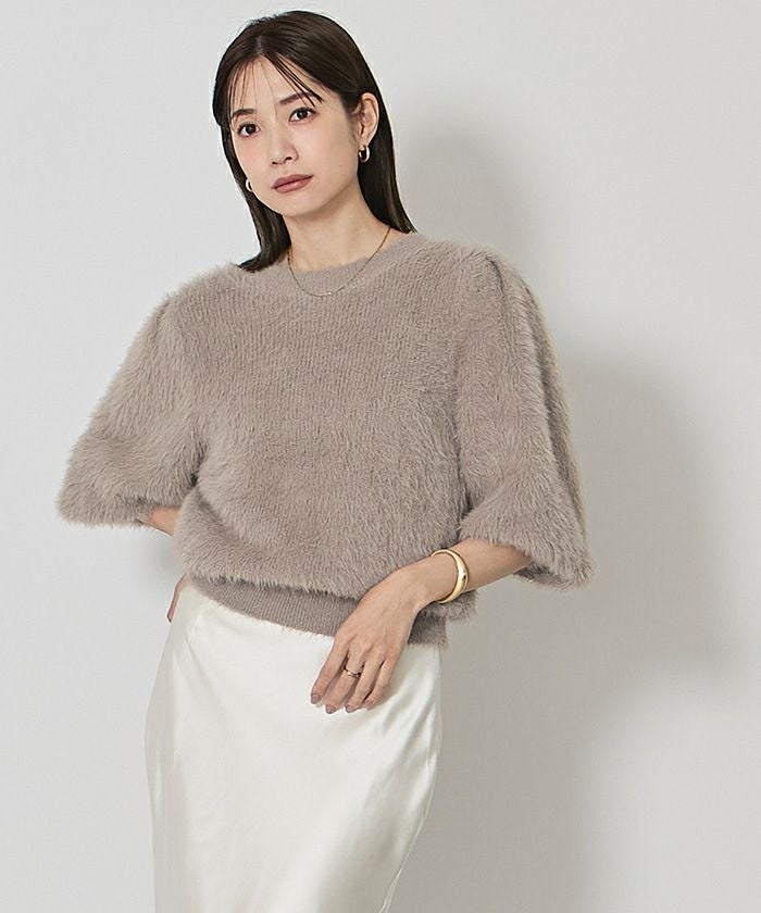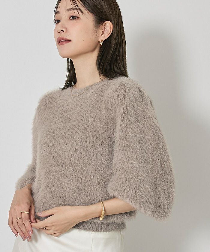 ふんわりした柔らかタッチのシャギーニット。