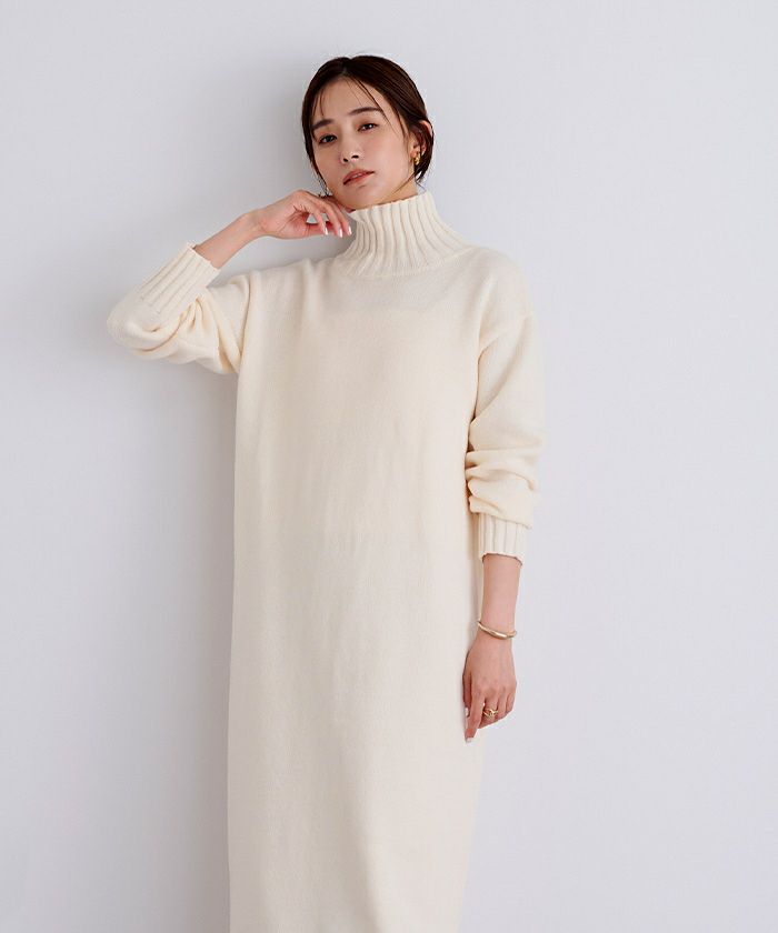 タートルネックで首元まで暖かくお洒落を楽しめるニットワンピース