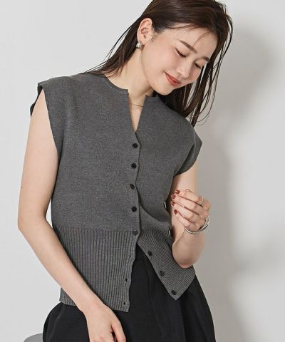 ウエストリブデザインのキーネックニット。