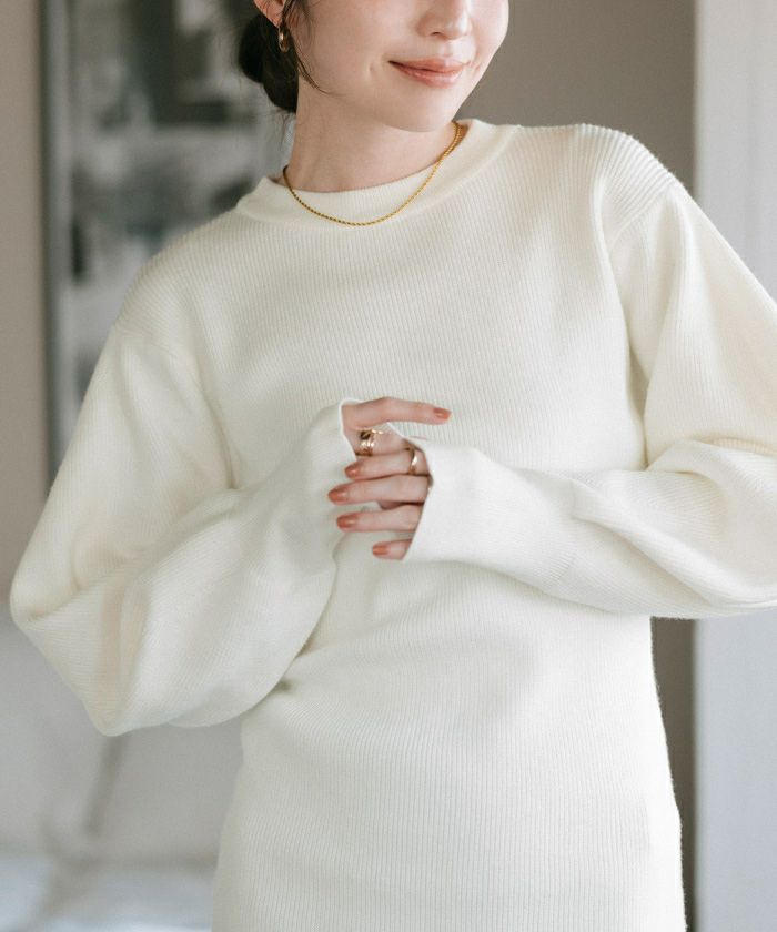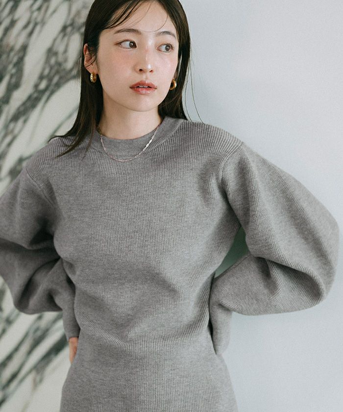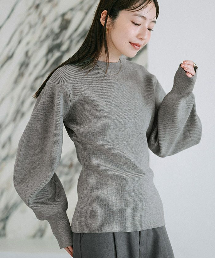 ボリュームスリーブウエストフィットニット