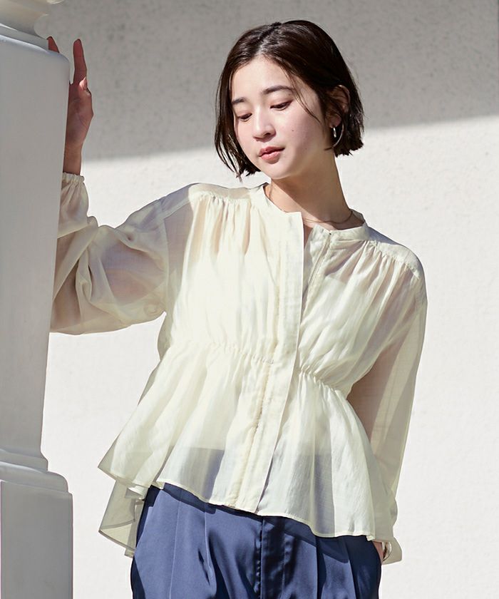 ウエストからふんわり広がるペプラムシルエットが女性らしさを引き立て、羽織るだけで着映えする一枚です。