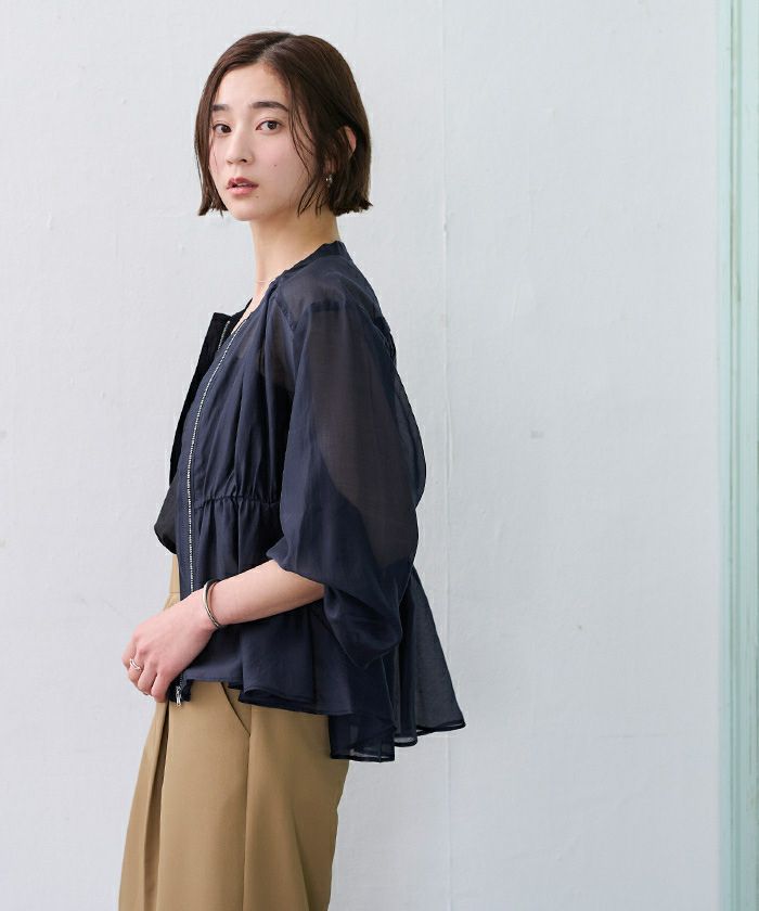 軽やかなシアー素材が涼しげな印象のブルゾン。