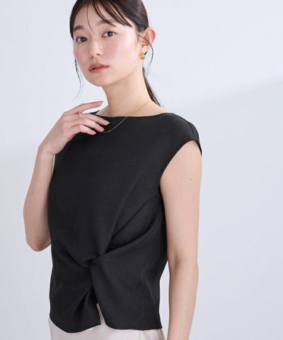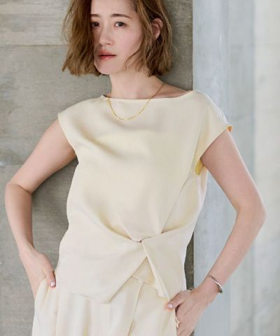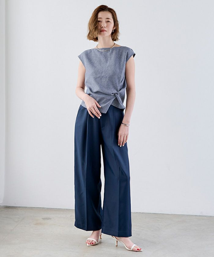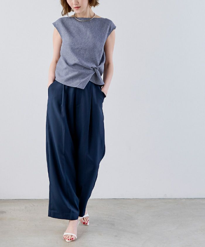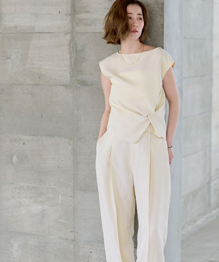 フロントにはタックを寄せて立体的なツイストデザインを施し、シンプルながらひと癖あるシルエットを叶えました。