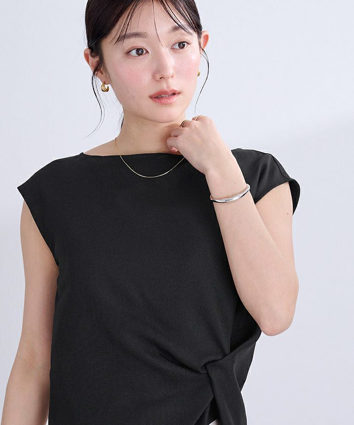 アームまわりは程よく開いていて、涼しさと抜け感をプラス。インナーが見えにくい幅に設定しているため、安心して着られるのもポイントです。