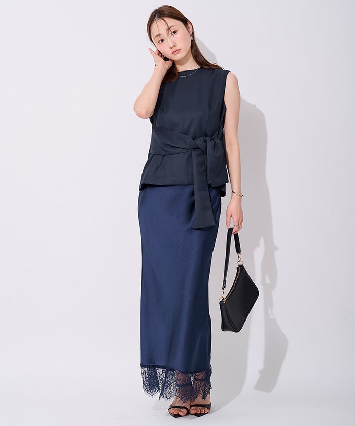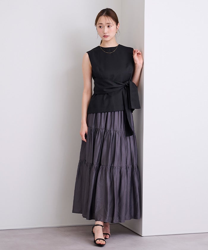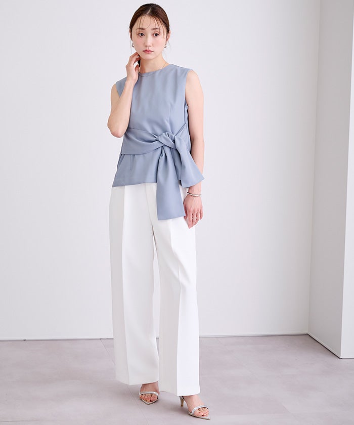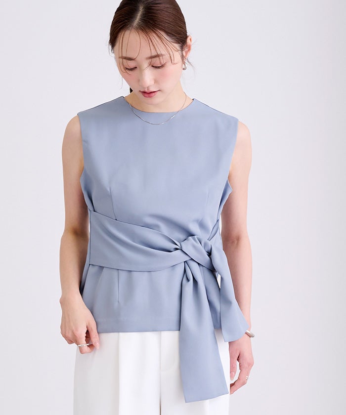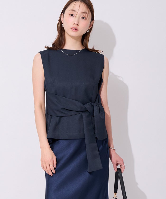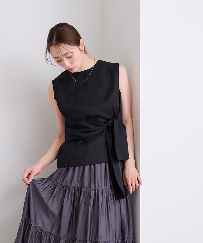 ウエストシェイプが女性らしさを演出するノースリーブトップス