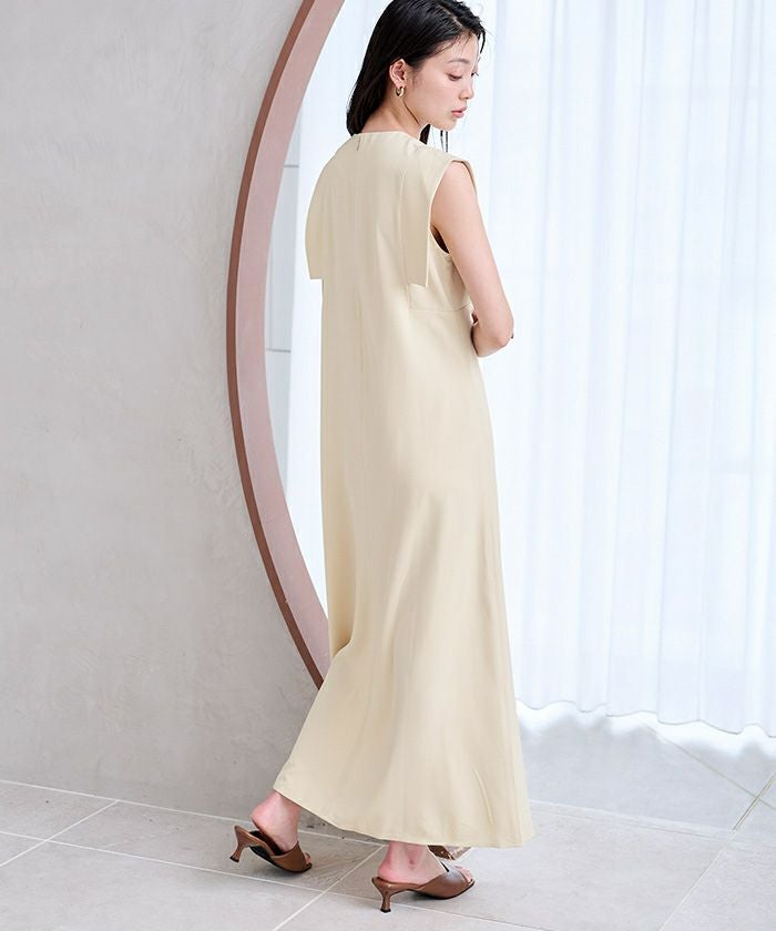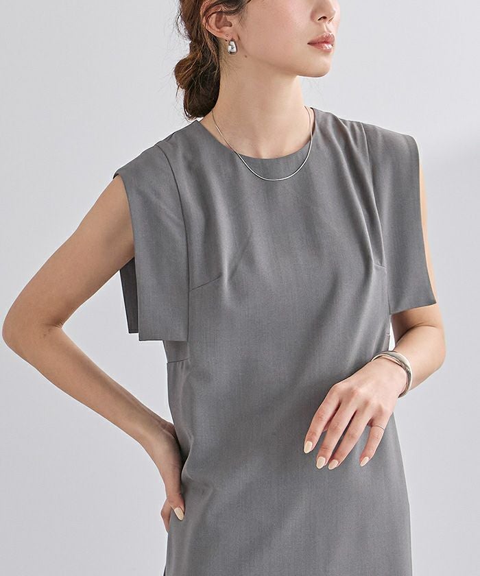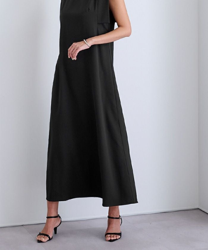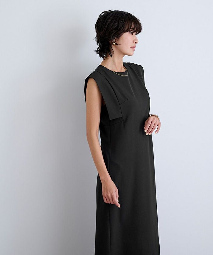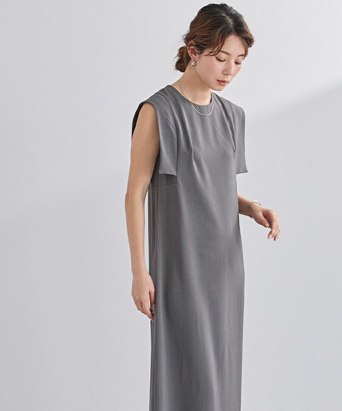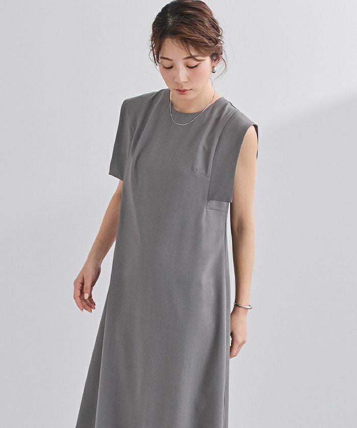 スクエアスリーブが気になる二の腕をさりげなくカバーしてくれるロングワンピース。
