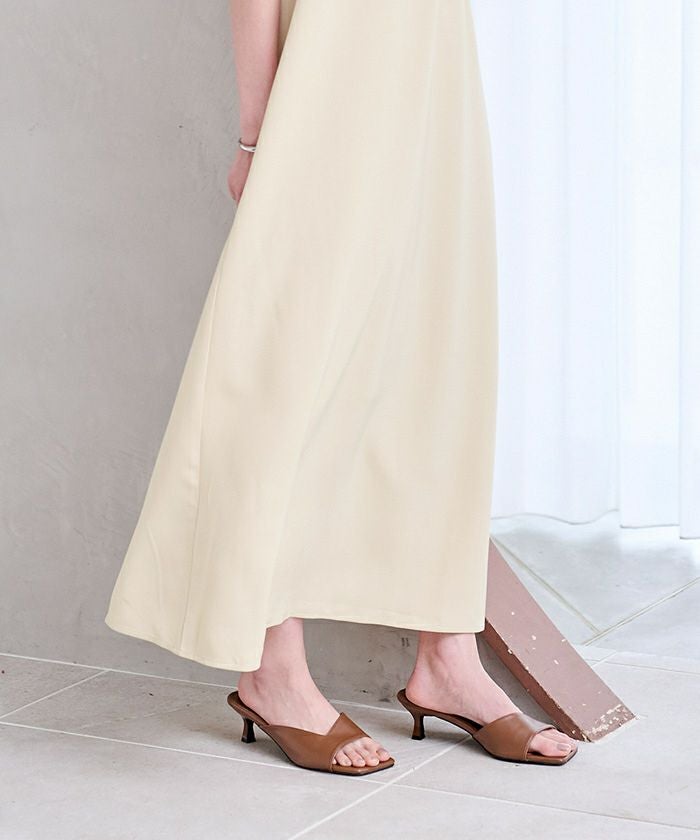 程よいハリがAラインをきれいにキープし、ロング丈でも軽やかな着心地です。