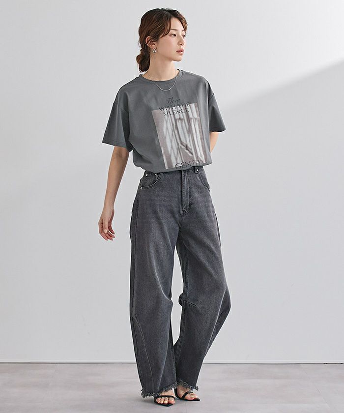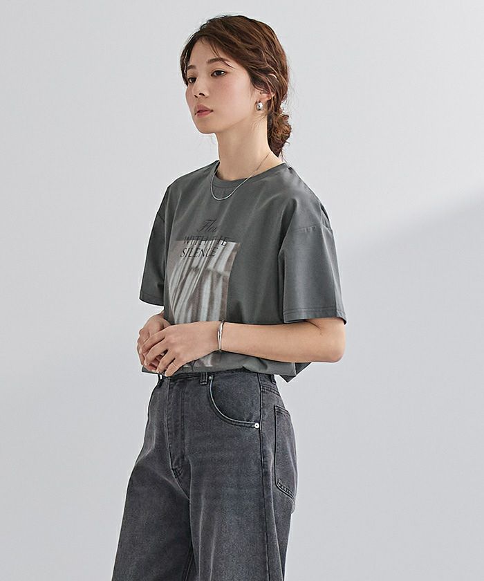 フォトプリントが目を惹く、デザインTシャツ。