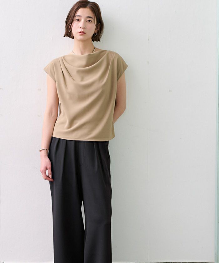 程よい落ち感のある素材で、カジュアルすぎず大人っぽく着用いただけます。