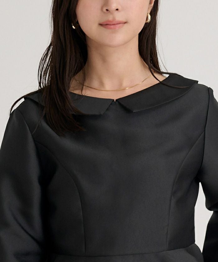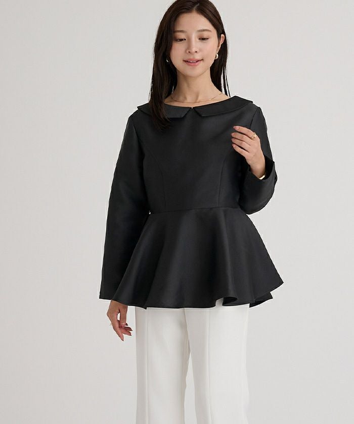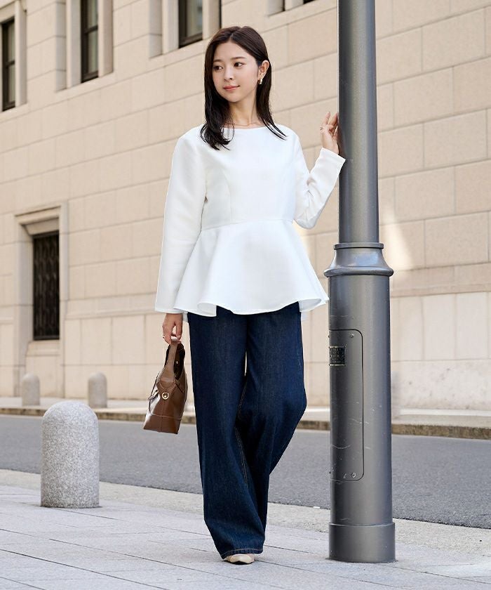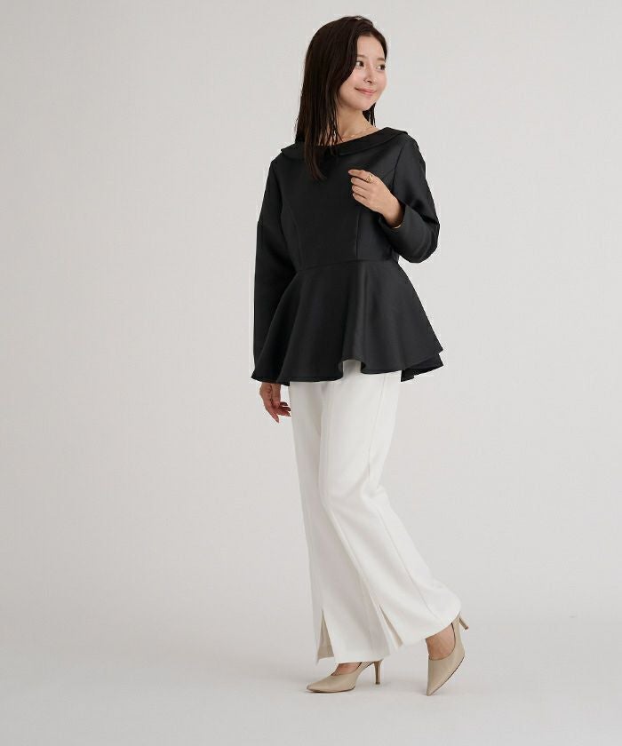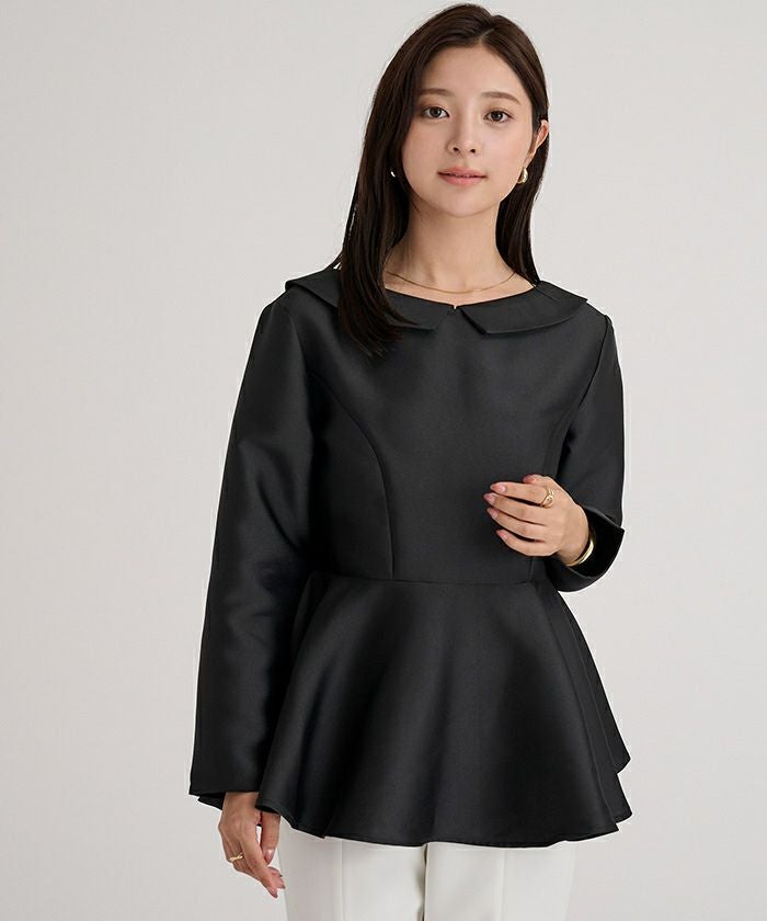 ウエストから広がるペプラムシルエットが、女性らしい華やかさを演出。