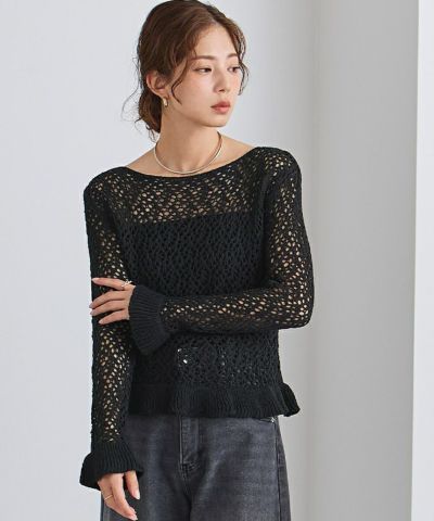 透け感のある網目デザインが軽やかな印象のスプリングニット。