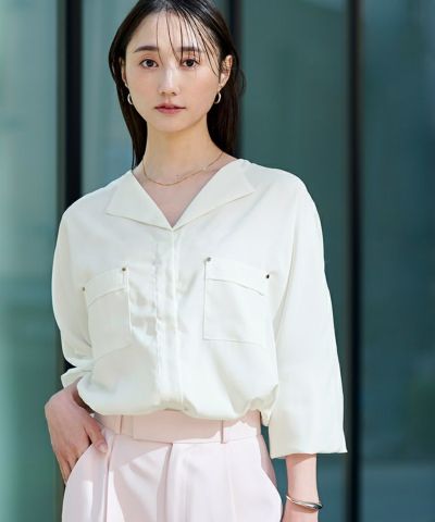 上品な光沢感ととろみ素材が魅力のブラウス。