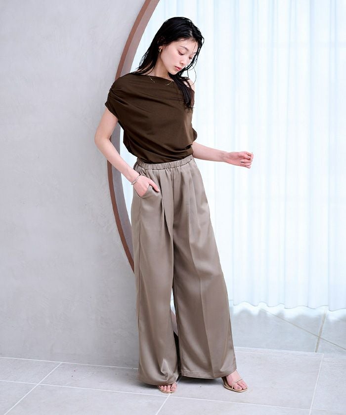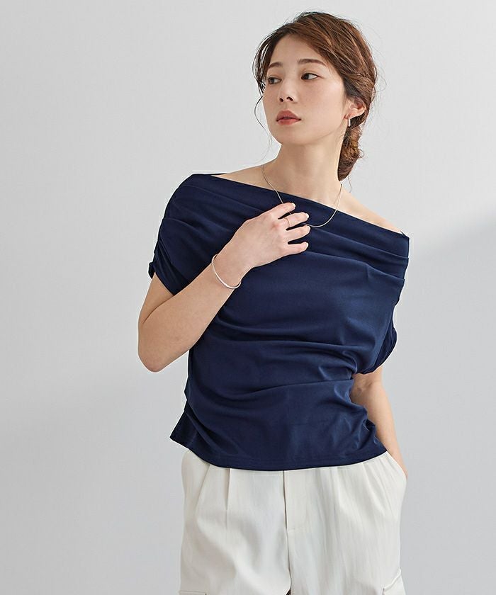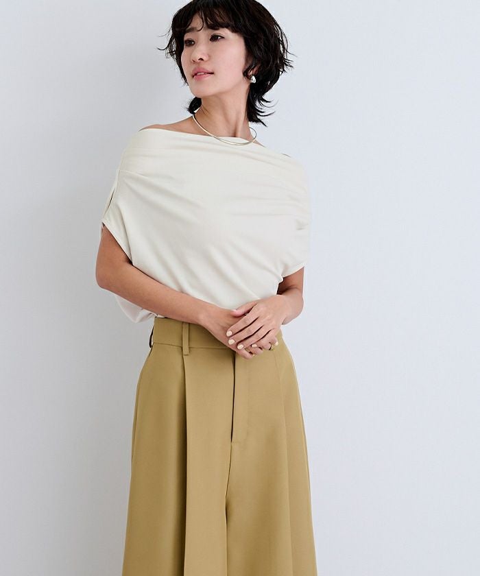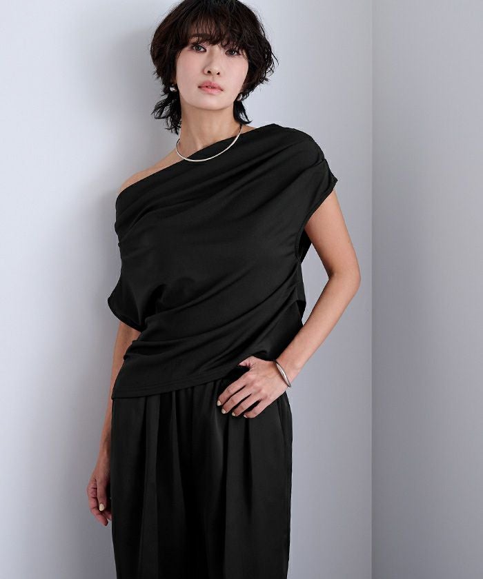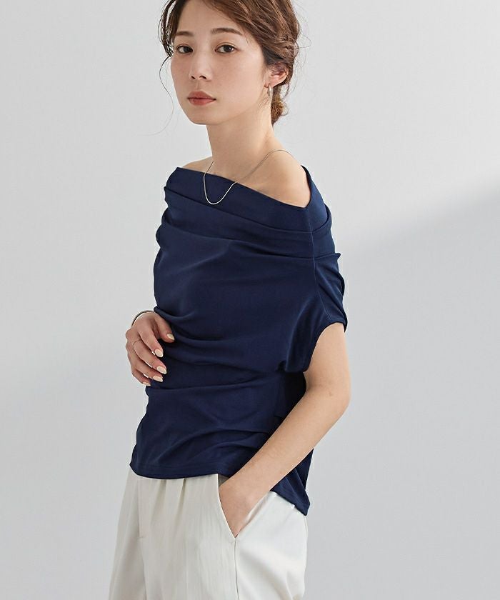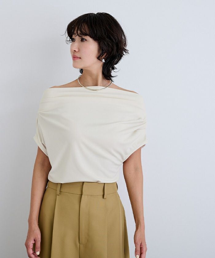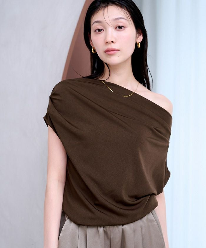 滑らかな落ち感が美しいカットソー素材で仕上げた、オフショルダー/ワンショルダーの2WAYトップス。