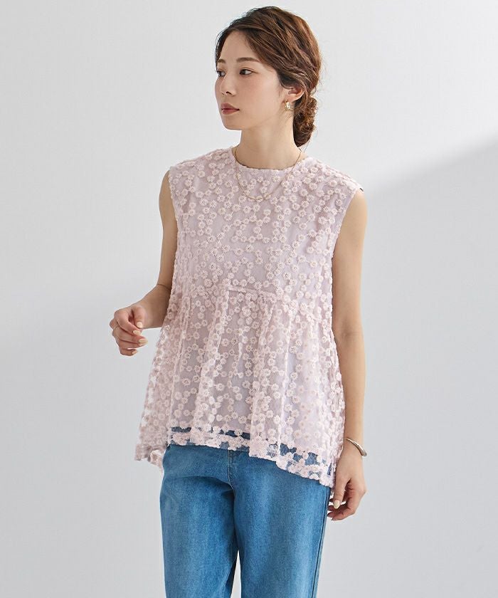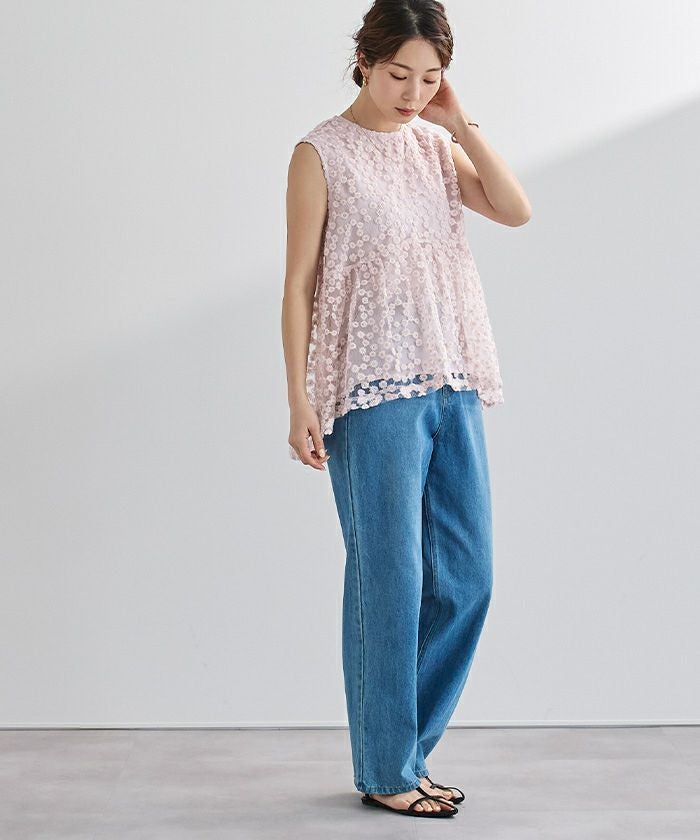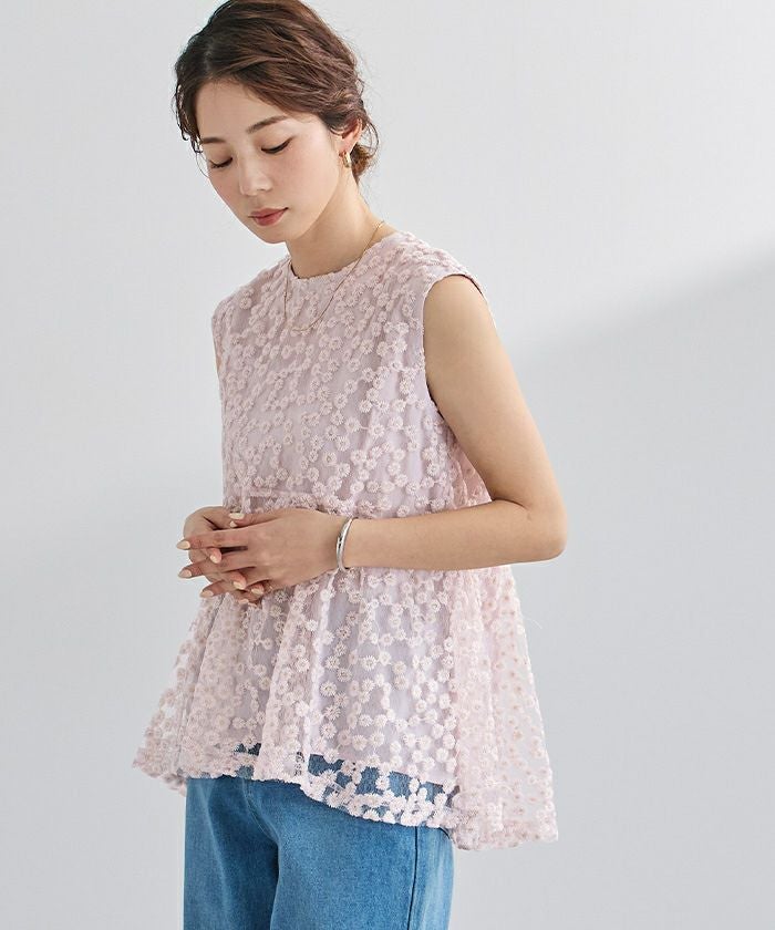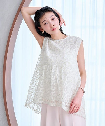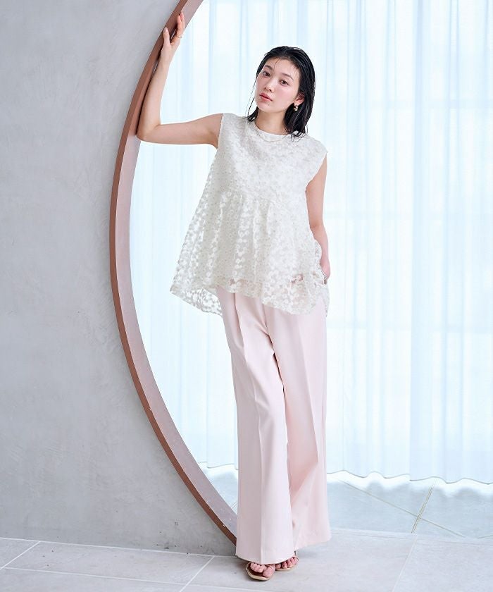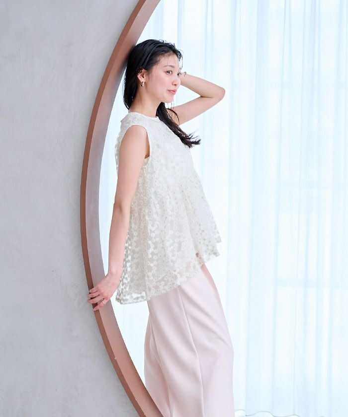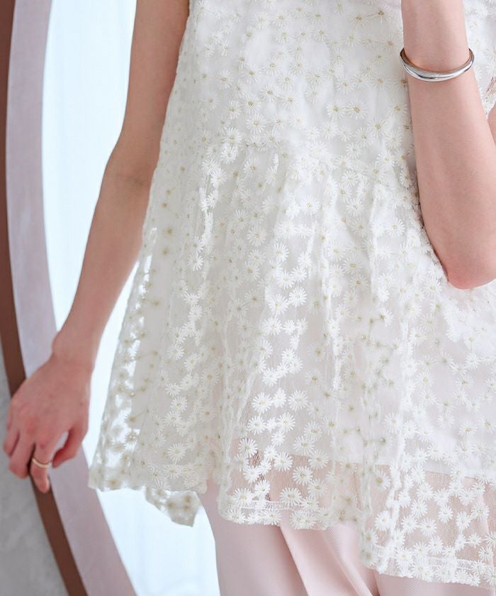 立体的な刺繍レースを使用し、繊細ながらも程よい張り感がある素材です。